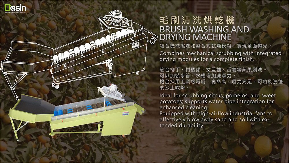 2. Limpieza Profunda y Secado: Función de Máquina de Lavado y Secado con Cepillo: Combina el fregado mecánico con módulos de secado integrados para un acabado completo. Equipado con ventiladores industriales de alto flujo de aire para soplar eficazmente arena y tierra con una durabilidad extendida. Aplicaciones: Ideal para fregar cítricos, pomelos y batatas; soporta la integración de tuberías de agua para una limpieza mejorada.