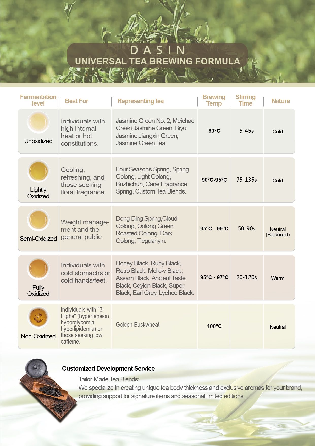Dasin catégorise les thés noirs commerciaux en fonction de la structure des saveurs et de l'application, aidant les magasins de boissons, les marques de chaînes et les cuisines centrales à identifier rapidement le thé le plus adapté à leurs menus.