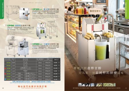 * Extrator de Suco de Cana-de-Açúcar CP300 para Balcão e Espremedor Industrial de Suco de Cana-de-Açúcar CP880 para Uso em Fábrica para sua referência.