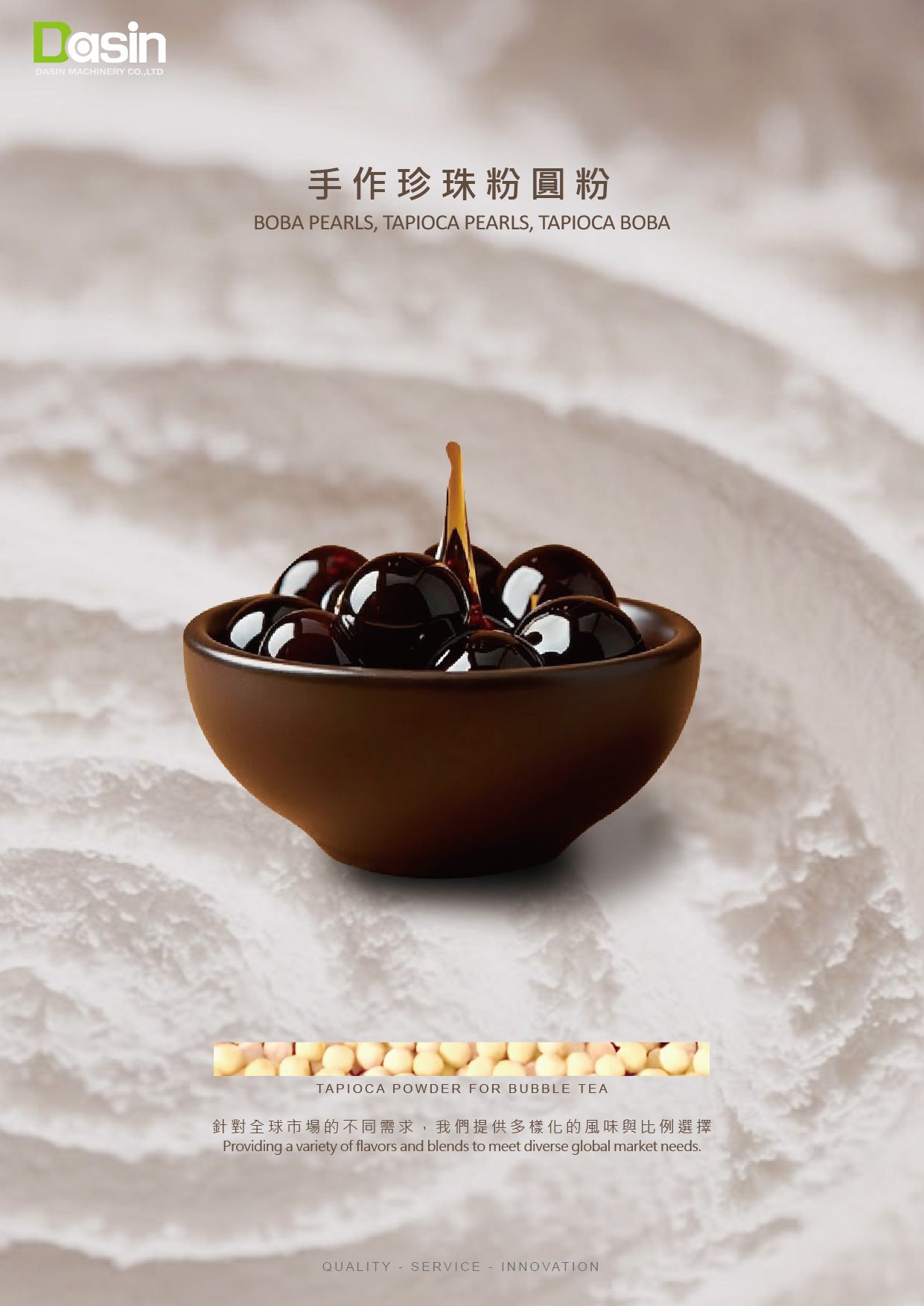 達鑫機械有限公司是台湾一家拥有超过40年经验的专业手作珍珠粉圆粉生产制造服务商. 我们成立于西元2010年, 在食品机械制造商领域上,Dasin提供专业高品质的手作珍珠粉圆粉制造服务,Dasin总是可以达成客户各种品质的要求
