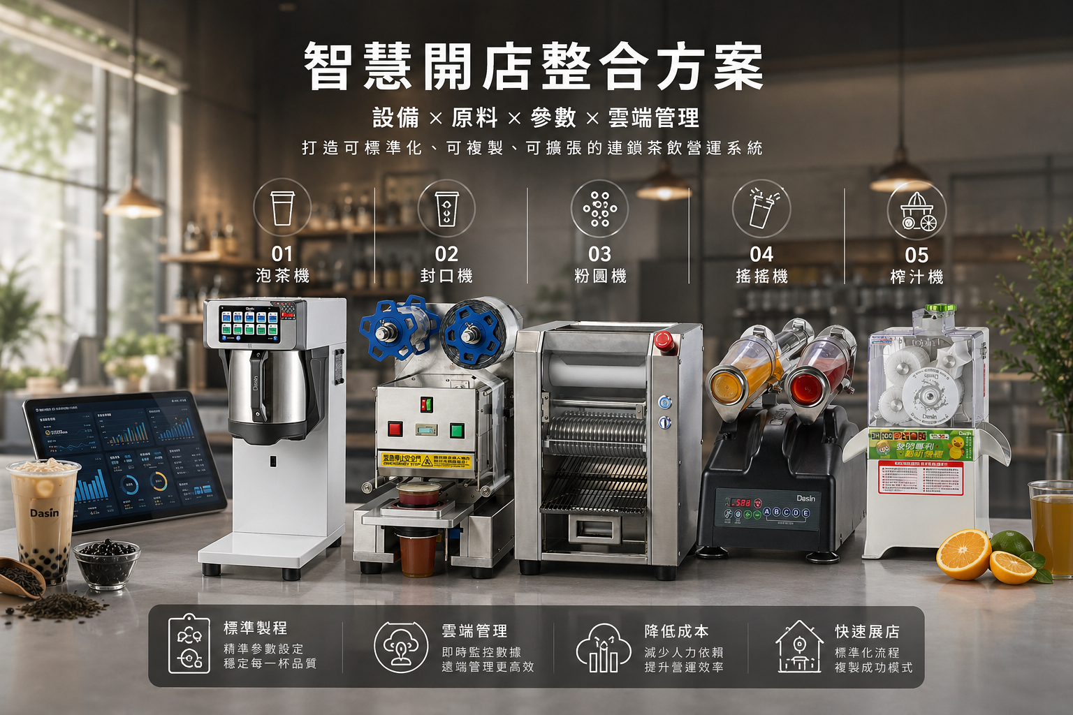 自動泡茶機, 商用茶飲設備, 飲料店設備整合, 智能食品機械, 手搖飲開店方案, 飲料店加盟系統, 智慧開店系統, 一站式開店服務, 茶飲自動化, 餐飲SOP標準化, 自動化煮茶設備, 連鎖茶飲標準化流程, 手搖飲多店管理系統, 降低飲料店人力成本, 縮短開店籌備時間, 減少餐飲試錯成本, 泡茶機參數設定教學, 雲端監控設備管理, 2026手搖飲創業趨勢, 連鎖手搖飲設備推薦