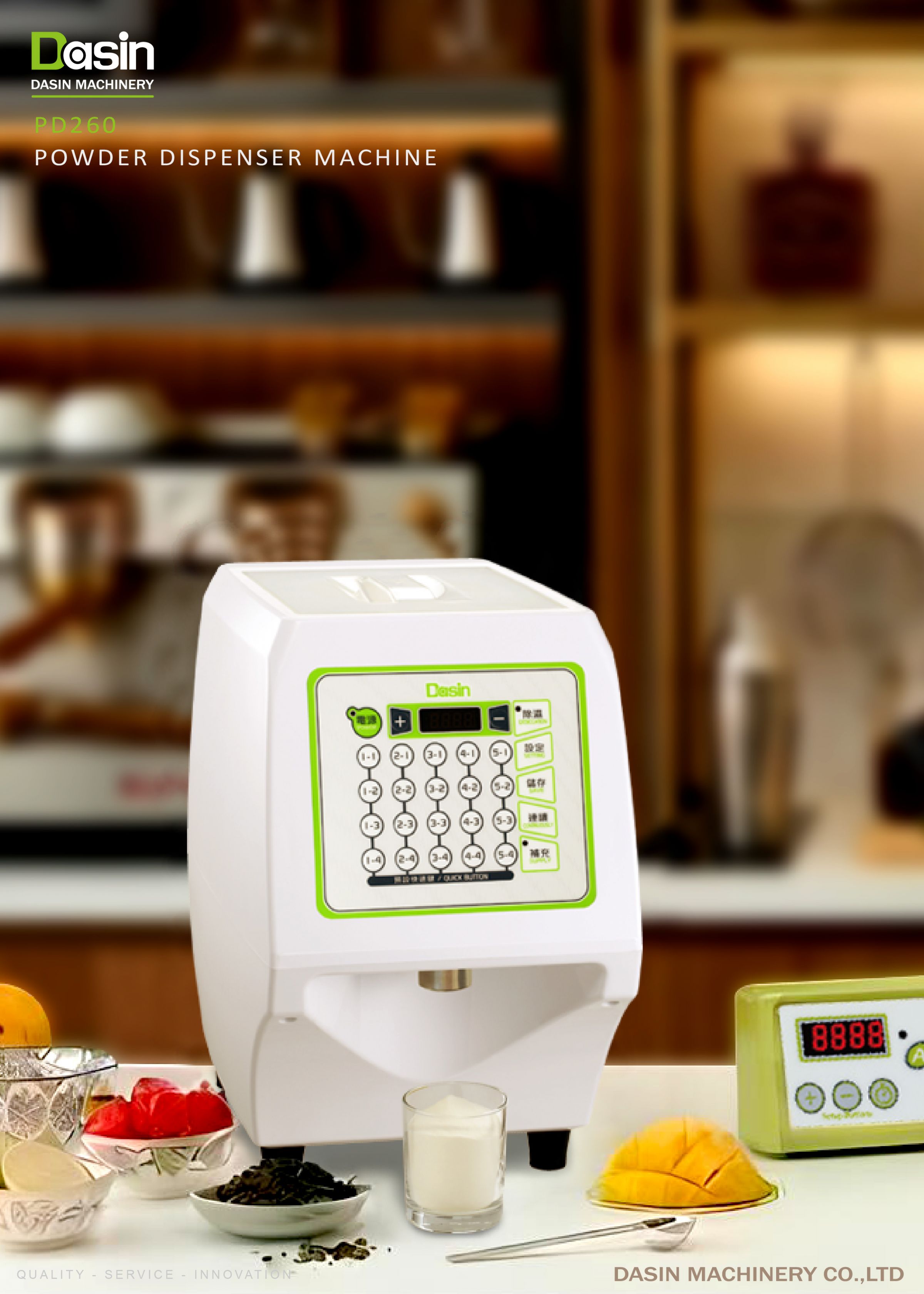 機器可定量各式乾燥粉末,如健康食品使用的酵素粉、烘焙業使用的糖粉或可可粉、化工廠使用的化工藥粉或是中西藥行使用的中西藥粉末、咖啡店使用的咖啡粉……等皆可使用。